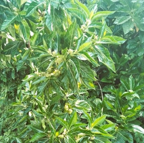 次は、実の写真が小さくて見にくいですが、「ノニ」です。健康に良い食材として有名ですよね。ドラゴンフルーツとは対照的に、見た目はそんなに奇妙ではないですが、なかなかに個性的な匂いと酸味と苦みで、実際、食べにくい。道端の雑木林に何気なく生えているとは驚きです。
