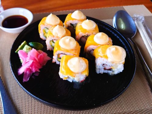 日本食レストランで、恐る恐る頼んでしまったのは「マンゴーマヨスシ」。マヨネーズ多すぎではあるものの、思ったよりは、大丈夫でした。