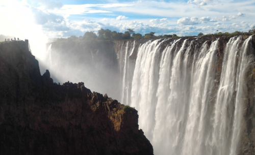 〔↑ザンビアとジンバブエの国境にあるヴィクトリアの滝。世界三大瀑布の一つで、ユネスコの世界遺産に登録されています〕