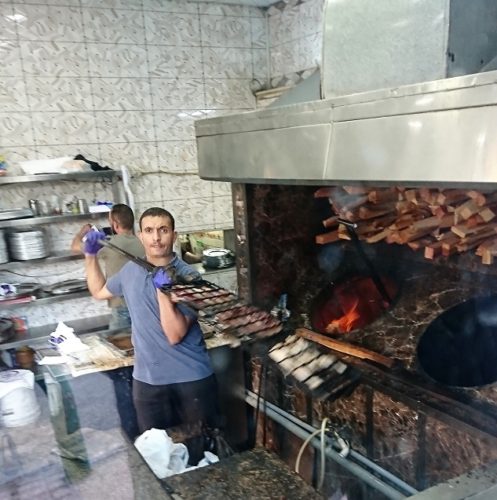 こちらは、アンマン市内にあるイラクの鯉料理店です。生け簀の中から、「あれちょうだい」と指した魚を網ですくってもらい計量します。ぴったり3㎏でした。