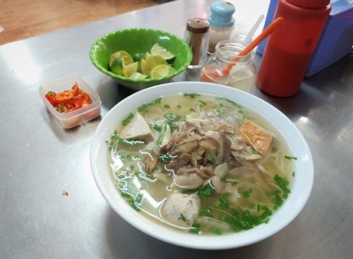 ハノイの、行きつけのホテル近くの通りには、以前は麺屋が2~3軒ほどだったが、いつのまにか10軒ほどに増えている。馴染みの店が比較的空いていたので、その店に入ることに。