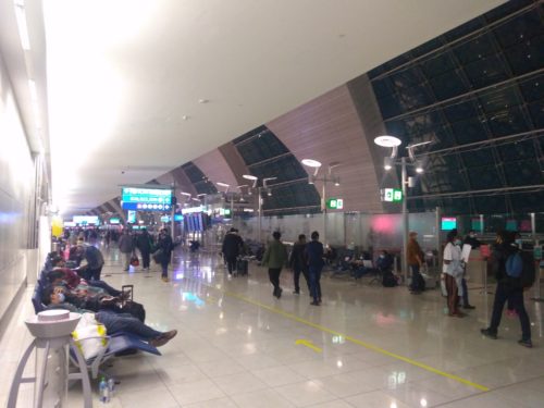 空港ビルは閑散としており、人もまばら。しかしチェックインカウンターは人だかり!
