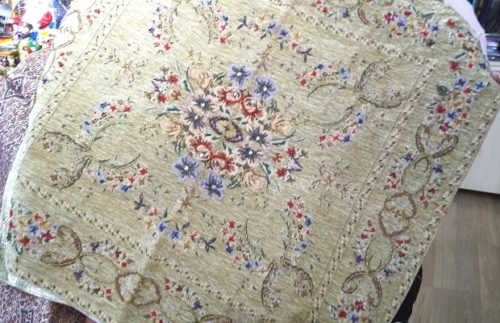 それにしても、絨毯みたいに厚いのや、スカーフみたいに薄いのしかなく、どこのレストランにもあるテーブルクロスのようなものは、なぜか見当たりません。